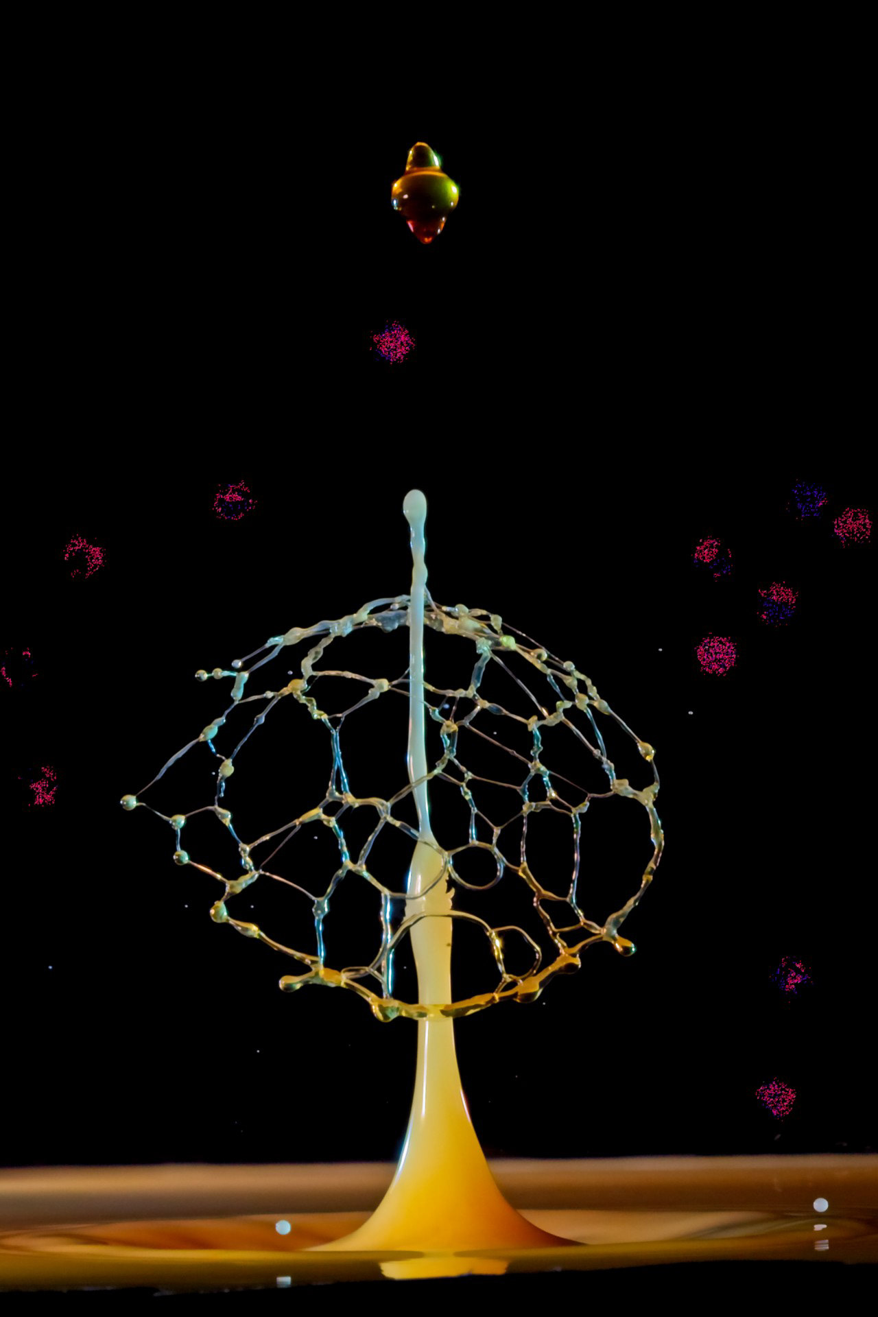 Gre za zajem trenutkov, ki so človeškemu očesu nevidni – ko kapljica tekočine zadene površino ali drugo kapljico in za delček milisekunde ustvari krone, stebričke, dežničke, gobice ali celo oblike, podobne cvetovom. Vsaka fotografija je unikatna, saj že minimalna sprememba časa, višine padca ali viskoznosti tekočine popolnoma spremeni rezultat.